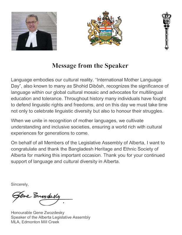 Message from the Speaker of the Alberta Legislative Assembly, |