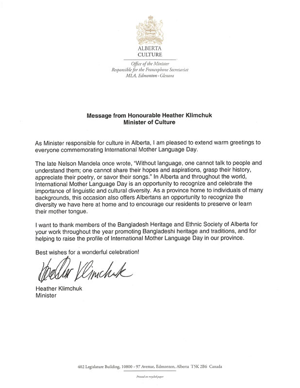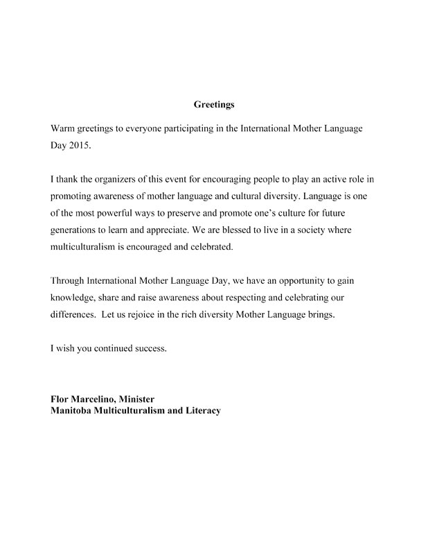 Message from the Manitoba Minister of Multiculturalism and Literacy