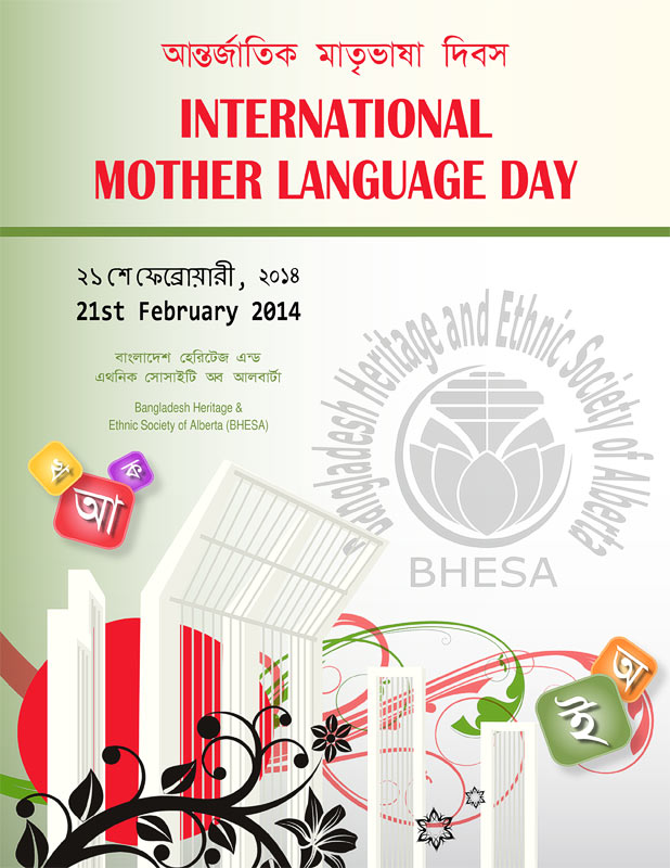 The Bangladesh Heritage and Ethnic Society of Alberta (BHESA), an organization that promotes the Bangladeshi Culture and Heritage in and around Edmonton, has issued a publication to their community for and about the International Mother Language Day in February 2014. Download this publication here: |